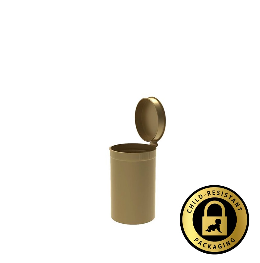 Our 13 dram Pop Top Bottles store 7 grams apiece. Each case we sell contains 160 opaque gold bottles. If you’re looking for easy yet secure storage for your products, pop top bottles & containers are an excellent solution for you. Order Opaque Gold Pop Top Bottles today!