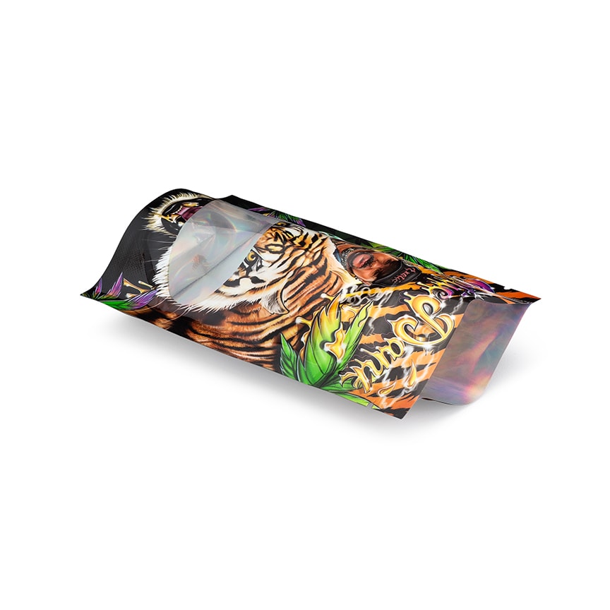 Show off you exotics with our Exotic Dank mylar bags! Our Exotic Dank bag features non other than the Tiger King himself along with one of his furry friends. Our one of a kind bags won’t be found anywhere else and also feature a 420 Stock branded gusset at the bottom of the bag. These bags also have a laser printed rainbow interior and feature a viewing window so that you can show off the goods in style! 420 Stock Trapper Bags are great for dressing up your product and create a fun experience for the end user!