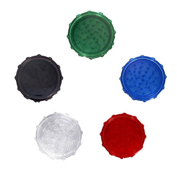 Our Plastic Grinders come in 5 colors: red, blue, green, clear, and smoke. Their economical price point makes them a great choice for dispensaries or smoke shops. These grinders are also great to toss in with goodie bags!