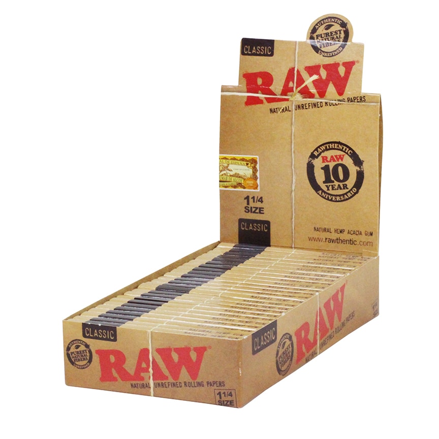 Raw Classic 1 1/4″ Rolling Papers are watermarked with a crisscross design and natural herb gum line to prevent runs and ensure a smooth burn. Raw Papers come in a natural tan color, because they come from non-bleached and chemical free whitened fibers. They’re not only %100 Vegan, but also chlorine free as well. Enjoy your raw papers with your favorite smoke and experience the difference.