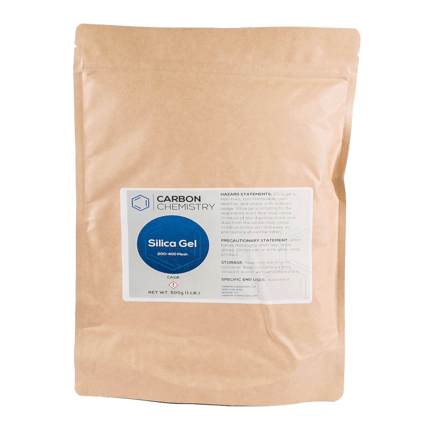 Silica Gel powder is used often in Column Chromatography as the stationary phase. It is mixed together with the solvent in the column making a slurry, then letting the solvent drain leaving the Silica sitting evenly in the column. Silica Gel helps space out or separate the fractions of compounds being passed through the stationary phase.