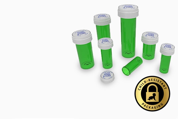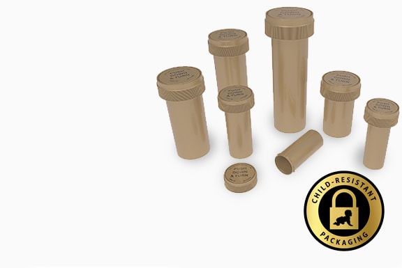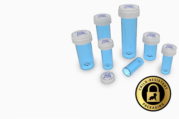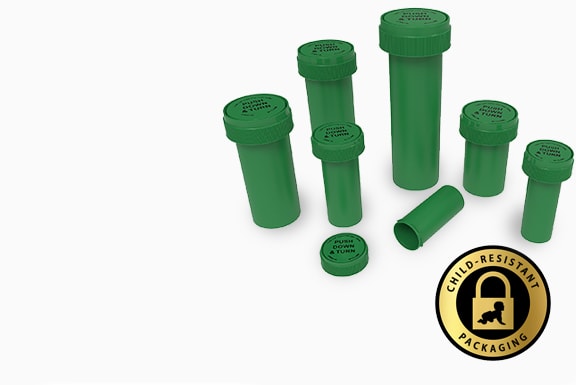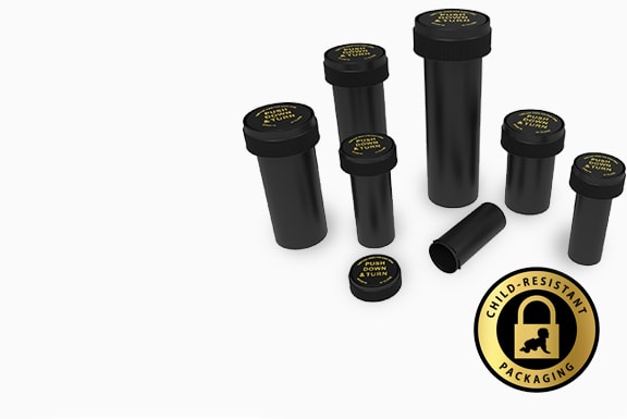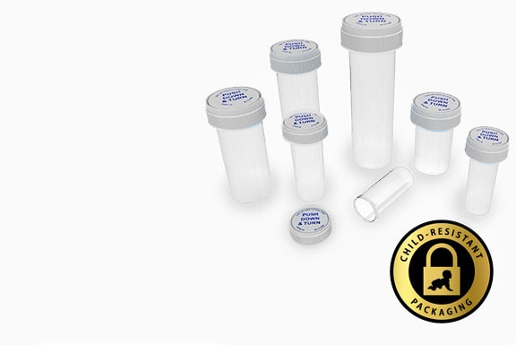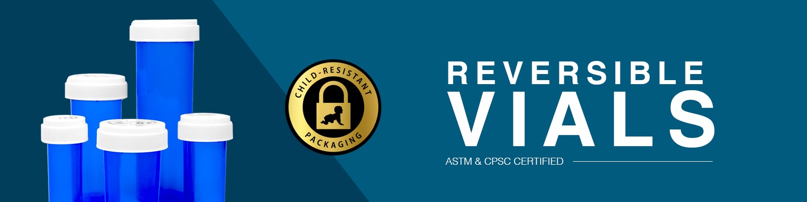 Our Reversible Cap Vials are the perfect solution for any business looking to stay compliant with child resistance safety laws in their state. Our Reversible Bottles feature a two-sided cap which allows users to screw it on from both sides, just simply push down and turn to open the vial and release its contents. Their odor proof design keeps unwanted odors from lingering, while keeping the contents fresh and preserved on the inside. Reversible Vials from 420 Stock are the perfect choice for packaging anything from flower to edibles. Our vials not only meet state standards, but exceed the expectations of the ASTM and CSPC. Shop Reversible Cap Vials from 420 Stock today!